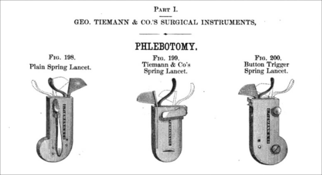 (Note: The following was taken from the website https://artsci.case.edu/dittrick/2014/07/24/the-spring-lancet-a-bloodstained-faithful-friend/)