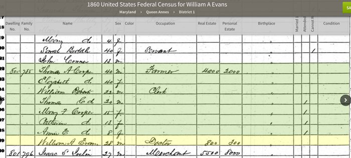 Unfortunately, very little about William Ashton Evans’ short life can be found. Presumably, he went to medical school and obtained his medical degree in Philadelphia. He was single, aged 28, and a “doctor”, when living with a family in Templeville, Maryland in the 1860 census.