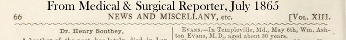 The last information found was a snippet in the May 1865 edition of the Philadelphia Medical and Surgical Reporter, which simply confirms his death: “In Templeville, Md., May 6, Wm. Ashton Evans, aged about 30 years.”